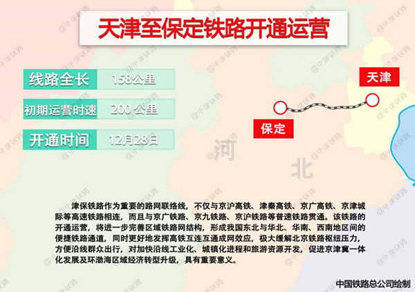 天津至保定鐵路開通運營 進一步完善京津冀鐵路網(wǎng)
