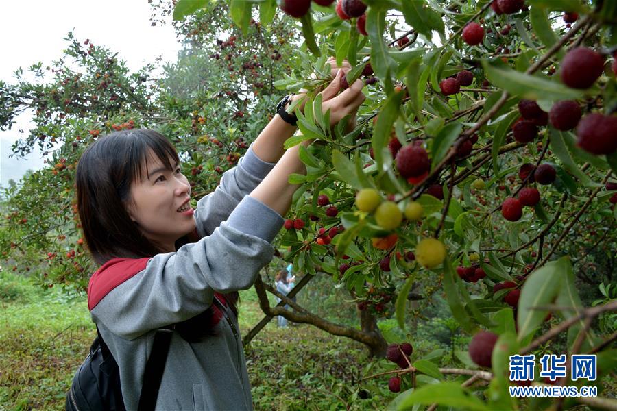 6月3日,一名游客在楊梅節(jié)上采摘楊梅。當日,貴州省黔東南苗族侗族自治州榕江縣高文苗寨舉辦楊梅節(jié),吸引眾多游客參加“楊梅大王”評選、吃楊梅比賽、吹蘆笙、跳蘆笙舞等趣味活動。新華社發(fā)(劉進銀 攝) -