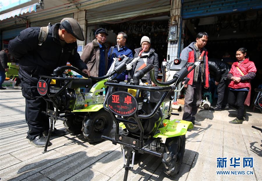 •   2月24日,在貴州省丹寨縣縣城,農(nóng)民在選購(gòu)微型耕種機(jī)。眼下正值春耕備播時(shí)節(jié),各地農(nóng)民挑選合適農(nóng)資,為春耕生產(chǎn)做準(zhǔn)備。新華社發(fā)(黃曉海 攝)