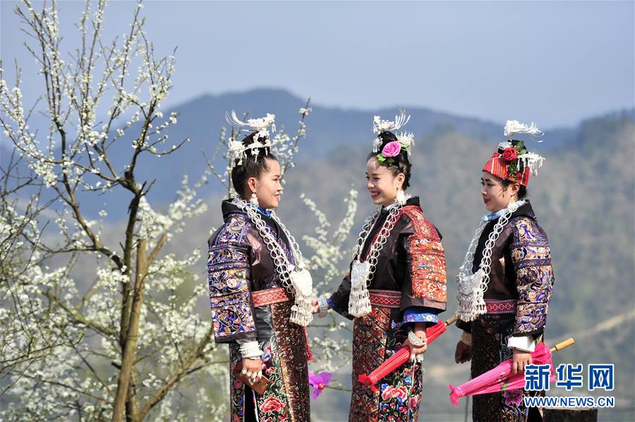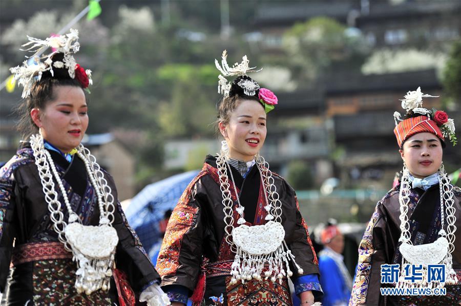 3月21日,在貴州省臺(tái)江縣施洞鎮(zhèn)小河村貓坡寨,當(dāng)?shù)卮迕裆碇⒀b參加節(jié)慶活動(dòng)。當(dāng)日是二十四節(jié)氣中的春分,貴州省黔東南苗族侗族自治州臺(tái)江縣施洞鎮(zhèn)小河村貓坡寨舉辦二月十五姊妹節(jié)。少數(shù)民族同胞身著節(jié)日盛裝歡聚一堂,共同慶祝節(jié)日。新華社發(fā)(林世禎 攝)