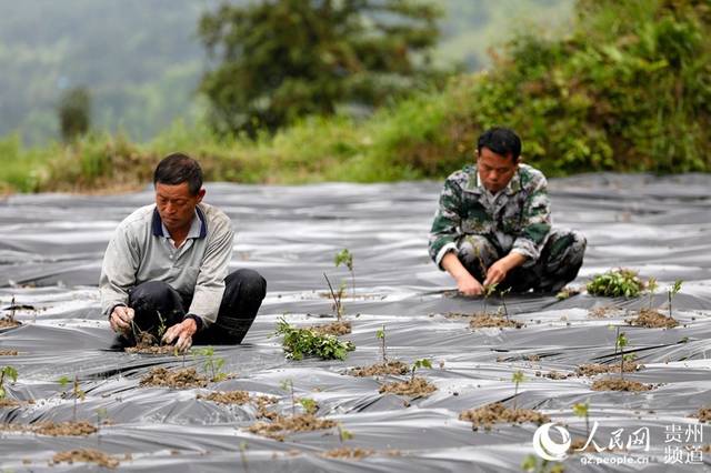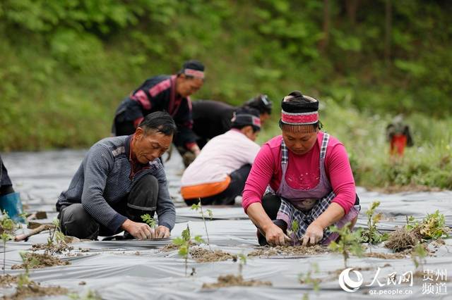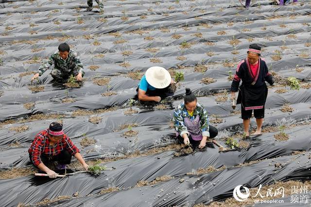 4月23日,在貴州省劍河縣柳川鎮(zhèn)高標村菊花種植基地,村民正在栽種菊花。