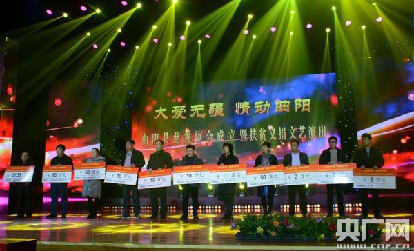 央廣網(wǎng)保定2月1日消息(記者孟曉光 通訊員 郭英焜) “這是心的呼喚,這是愛(ài)的奉獻(xiàn),這是人間的春風(fēng),這是生命的源泉……”日前,河北省曲陽(yáng)縣慈善協(xié)會(huì)成立暨扶貧義捐文藝演出在曲陽(yáng)永寧會(huì)堂舉行,在“大愛(ài)無(wú)疆 情動(dòng)曲陽(yáng)”扶貧義捐現(xiàn)場(chǎng),社會(huì)各界當(dāng)場(chǎng)捐款2597.6966萬(wàn)元。