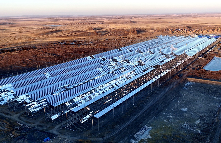 這是張家口壩上地區(qū)的一處正在建設(shè)中的光熱發(fā)電場(chǎng) -