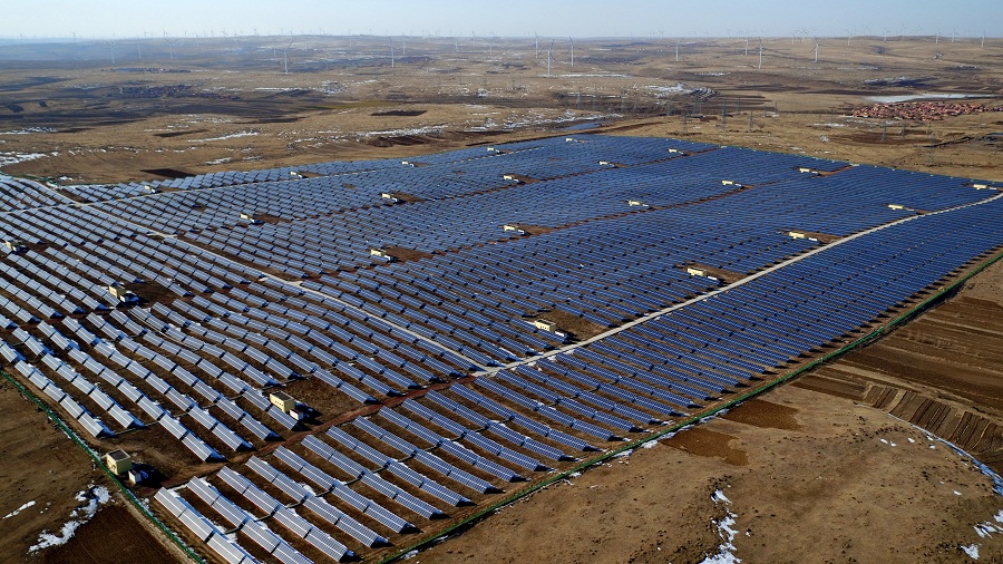 這是張家口壩上地區(qū)的一處光伏發(fā)電場(chǎng) -