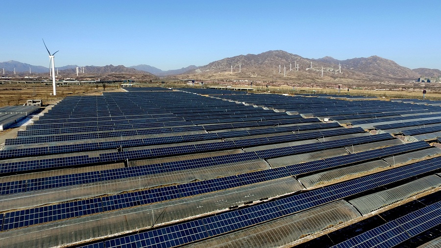 這是張家口市懷來(lái)縣的一處農(nóng)光互補(bǔ)的發(fā)電場(chǎng) -