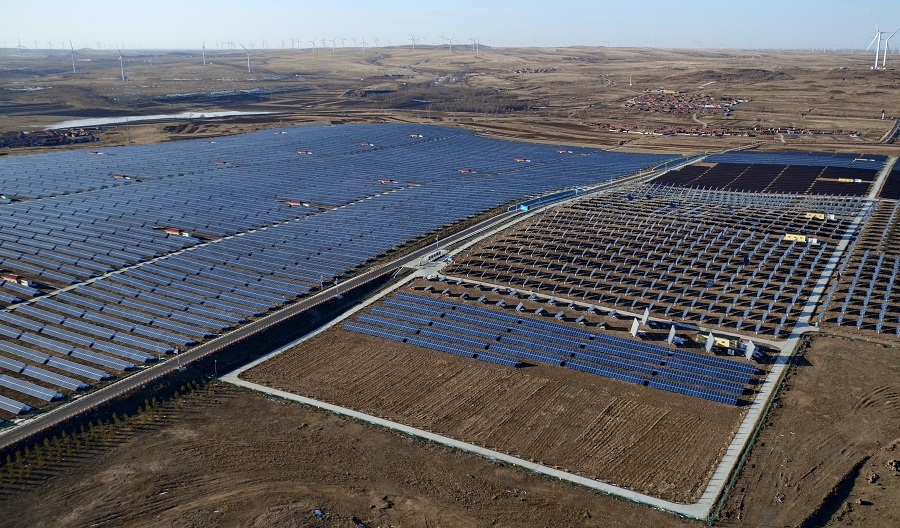 這是張家口壩上地區(qū)的一處光伏發(fā)電場(chǎng)和風(fēng)電場(chǎng)