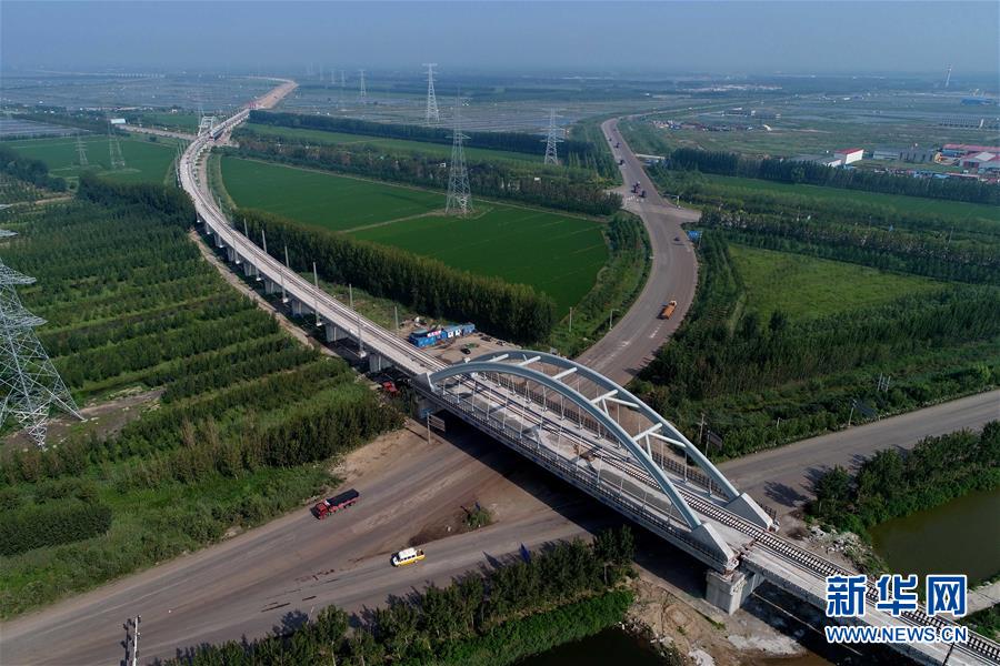 這是建設(shè)中的唐曹鐵路曹妃甸區(qū)境內(nèi)的跨唐曹高速公路引線大橋(7月12日攝)。近日,河北省唐山市的唐(唐山)曹(曹妃甸)鐵路架梁、鋪軌同時(shí)展開,確保年內(nèi)建成通車。據(jù)介紹,唐曹鐵路北起唐山站,南至曹妃甸工業(yè)區(qū)臨港商務(wù)區(qū)站,正線全長76.371公里,設(shè)計(jì)時(shí)速160公里。新華社記者楊世堯攝 -