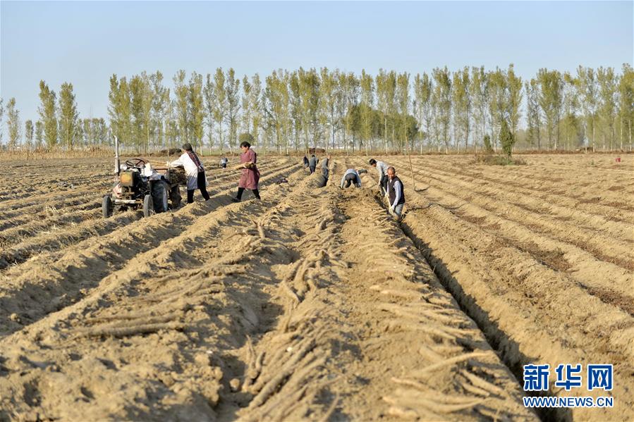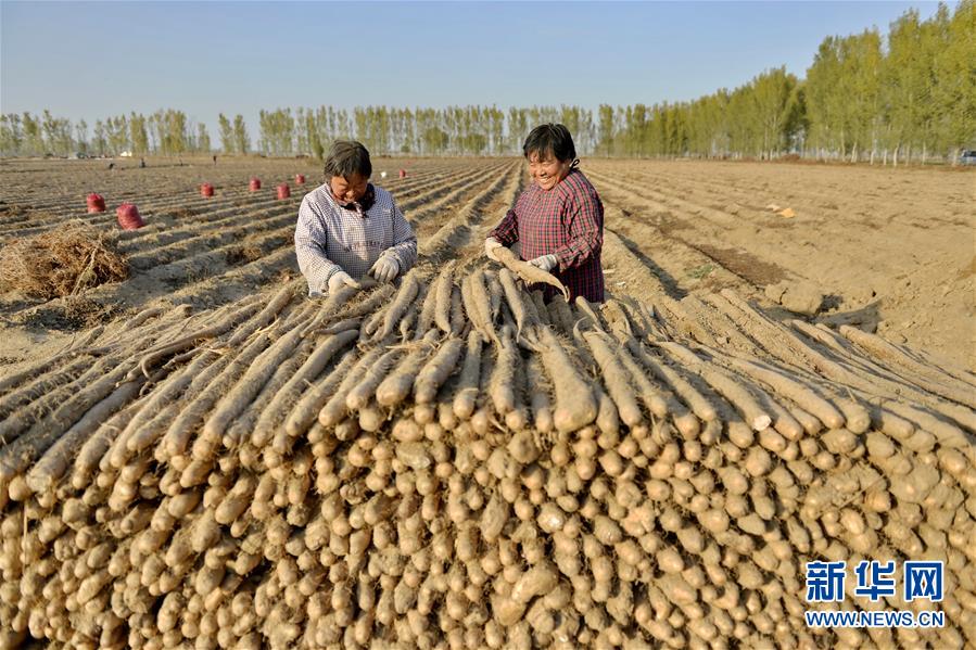 11月20日,河北省任縣民豐種植專業(yè)合作社的農(nóng)民在收獲白山藥。新華社記者 牟宇 攝 初冬時節(jié),河北省任縣3000余畝白山藥迎來豐收季,農(nóng)民們忙著收獲、挑揀、運(yùn)輸,田野里一派繁忙景象。近年來,任縣在調(diào)整優(yōu)化農(nóng)業(yè)產(chǎn)業(yè)結(jié)構(gòu)過程中,根據(jù)當(dāng)?shù)赝寥馈夂蛱攸c(diǎn),推廣白山藥等冬收、冬種農(nóng)作物規(guī);N植,掀起冬季增收熱潮。 -