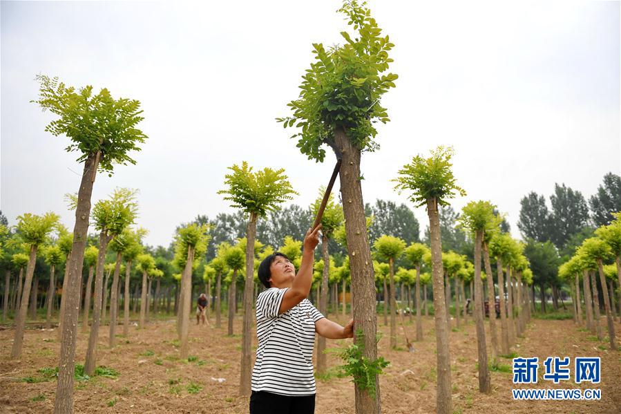 •      7月10日,河北省巨鹿縣種植戶在苗木基地內(nèi)勞作。近年來,河北省巨鹿縣把景觀苗木繁育種植作為精準(zhǔn)扶貧的重要抓手,采取“公司+合作社+農(nóng)戶”的經(jīng)營(yíng)模式,集中連片發(fā)展。目前,巨鹿縣已有苗木專業(yè)合作社20余個(gè),帶動(dòng)5000多農(nóng)戶實(shí)現(xiàn)增收。新華社記者 牟宇 攝