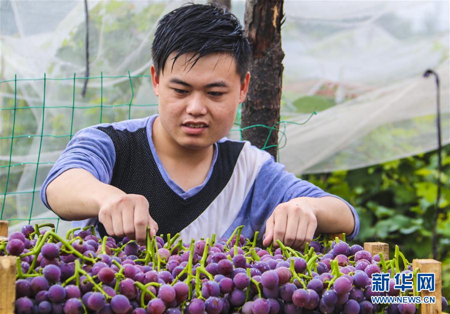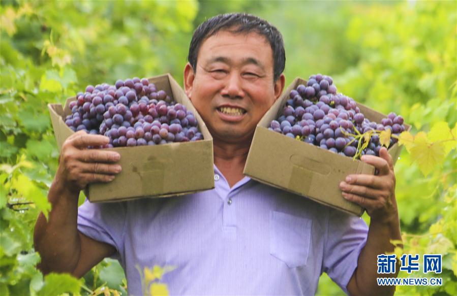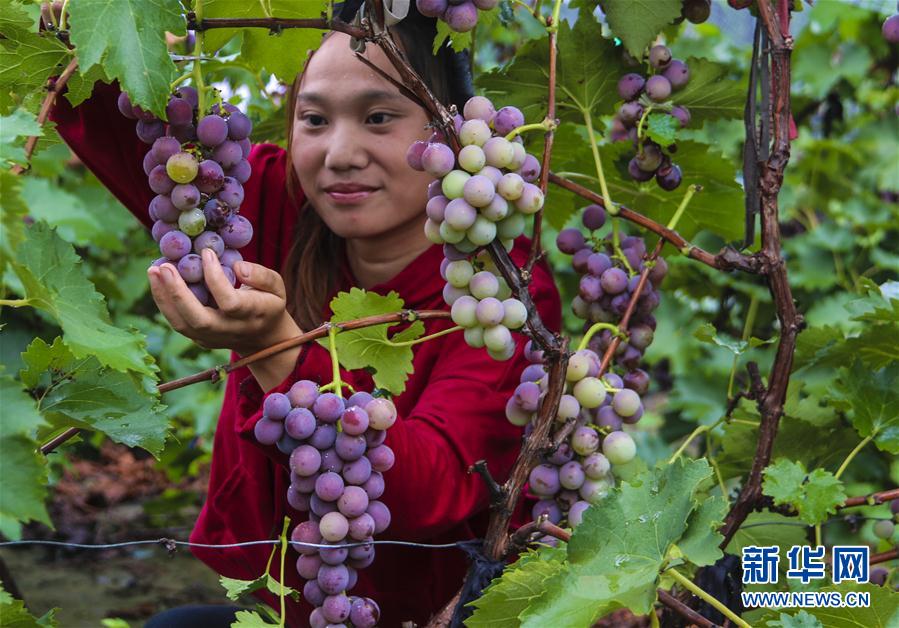 8月14日,在河北永清縣三圣口鄉(xiāng)冰窖村,游客在采摘葡萄。河北省永清縣三圣口鄉(xiāng)冰窖村是該縣有名的葡萄種植專業(yè)村。近年來,該村大力推廣引進葡萄種植新技術、新品種,引導農民種植錯季葡萄,實現(xiàn)了每年4月至9月都有不同品種的葡萄上市。目前全村種植葡萄5000余畝,年產值達3000余萬元。新華社記者李曉果 攝 -