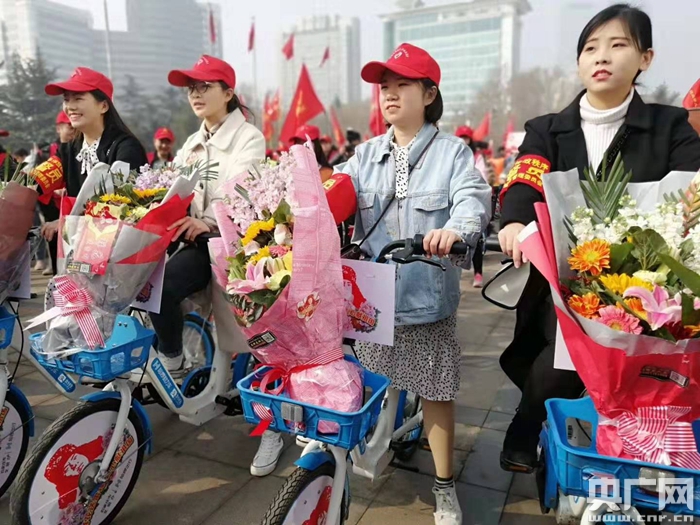 送花(央廣網(wǎng)發(fā) 石家莊宣傳部供圖)