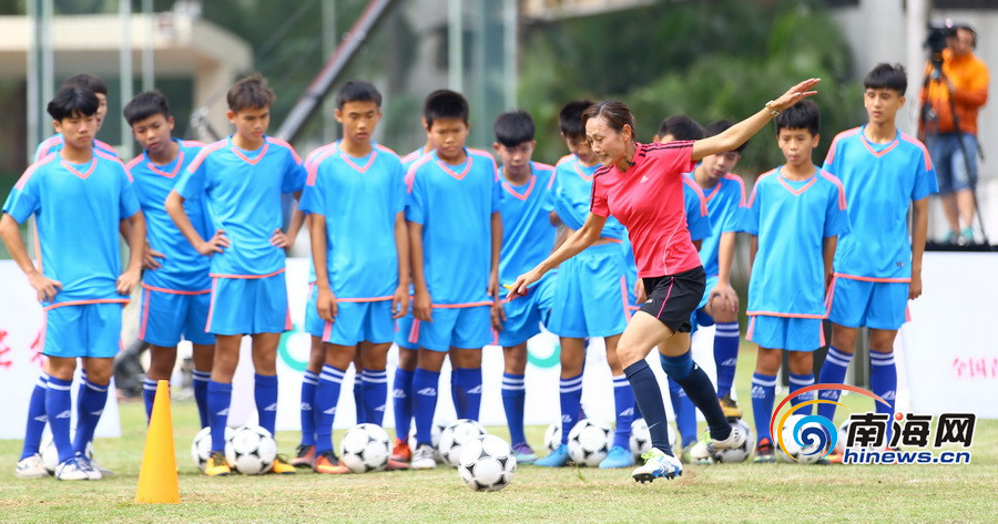 2016年11月17日,在海南中學(xué),初中部足球興趣班的學(xué)生在前國家女足運(yùn)動(dòng)員韋海英的指導(dǎo)下進(jìn)行校園足球公開課訓(xùn)練。據(jù)了解,“全國青少年校園足球新長征”海南站活動(dòng)16日在海南中學(xué)啟動(dòng),該活動(dòng)旨在以紀(jì)念中國工農(nóng)紅軍長征勝利80周年為契機(jī),宣傳推廣校園足球;顒(dòng)內(nèi)容包括校園足球公開示范課、校園足球心得分享會(huì)以及校園足球新長征系列微電影拍攝等,通過系列活動(dòng)來激勵(lì)大家發(fā)展校園足球,鑄就足球夢想。