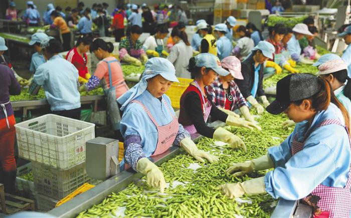 日前,昌江綠寶農(nóng)產(chǎn)品集配中心,工人們?cè)谇逑础⒑Y選運(yùn)往浙江省杭州市的20萬(wàn)斤毛豆。據(jù)介紹,經(jīng)加工包裝后,每年約有4.7億斤農(nóng)產(chǎn)品從該集配中心銷往全國(guó)各地。