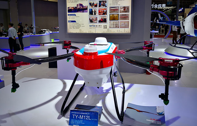 天鷹兄弟集團應組委會邀請,攜最新自主研發(fā)的多旋翼植保無人機TY-M12L精彩亮相2019年中國·廊坊國際經濟貿易洽談會,受到政府領導及與會觀眾的高度關注,F(xiàn)場負責人毛海興介紹這款被稱為“長腦的打藥神器”藥箱容量為12升,續(xù)航時間是18-25分鐘,作業(yè)效率為70-90畝每小時;獨創(chuàng)C型機臂創(chuàng)新設計,一步式折疊收納,運輸更便捷;全機身模塊化設計,便于拆裝與維修,維護成本低;機身采用工業(yè)三防設計,在惡劣作業(yè)環(huán)境下也能正常運作;同時配備了智能化噴灑系統(tǒng),可針對不同作物及環(huán)境進行精準噴灑;支持全自主飛行控制及夜航作業(yè)飛行。