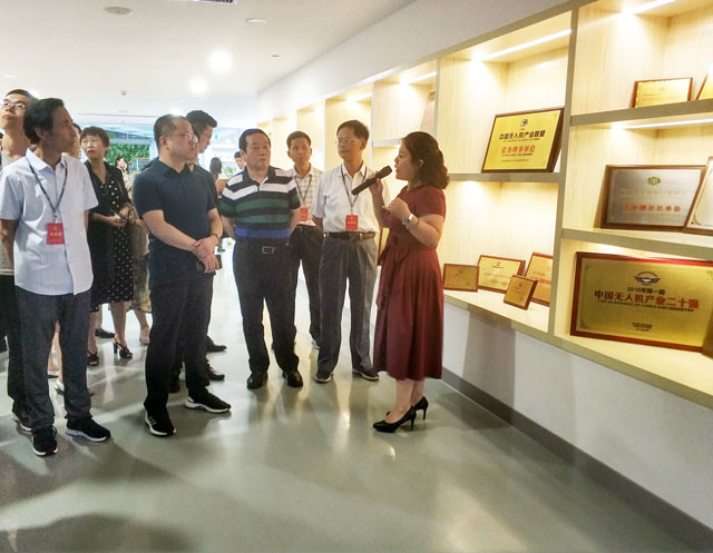 隨后,代表參觀了天鷹兄弟無人機展廳、企業(yè)文化墻等,并觀看了天鷹兄弟植保無人機作業(yè)視頻。現(xiàn)場負責(zé)人張思玲為大家詳細介紹了天鷹兄弟自成立以來發(fā)展歷程以及獲得的多項榮譽,代表們對天鷹兄弟企業(yè)創(chuàng)新創(chuàng)業(yè)發(fā)展成果以及在農(nóng)業(yè)植保無人機領(lǐng)域做出的突出成績給予高度的評價。