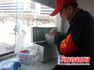 12日這天,趙顯達(dá)老人6點(diǎn)鐘起床,早飯都顧不上吃便急匆匆地乘坐1個(gè)小時(shí)的公交車(chē)趕至火車(chē)站。打掃衛(wèi)生,整理醫(yī)藥包等物品,為乘客指路,倒水,收集乘車(chē)信息……一上午,趙顯達(dá)不厭其煩地為一個(gè)又一個(gè)旅客解答問(wèn)題,連喝口水的時(shí)間都沒(méi)有,但他卻樂(lè)此不疲。他說(shuō),能夠在春運(yùn)期間為旅客服務(wù)很自豪,做的都是瑣碎的小事,但希望旅客因?yàn)樗姆⻊?wù)旅程變得更加舒心。(馬義恒)