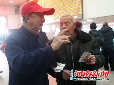 央廣網(wǎng)河南分網(wǎng)消息 春運(yùn)啟幕,無(wú)數(shù)外出打工人員走上歸鄉(xiāng)之路。在河南鄭州火車(chē)站東廣場(chǎng),78歲老人趙顯達(dá)放棄在家清閑,帶著紅帽子,“老年雷鋒團(tuán)”袖章,熱情地為四面八方的旅客指路、倒水、提供醫(yī)藥包、針線盒……趙顯達(dá)2000年加入“老年雷鋒團(tuán)”這個(gè)義務(wù)為春運(yùn)旅客義務(wù)提供指路等便捷服務(wù)的公益團(tuán)體,至今已默默服務(wù)15年。