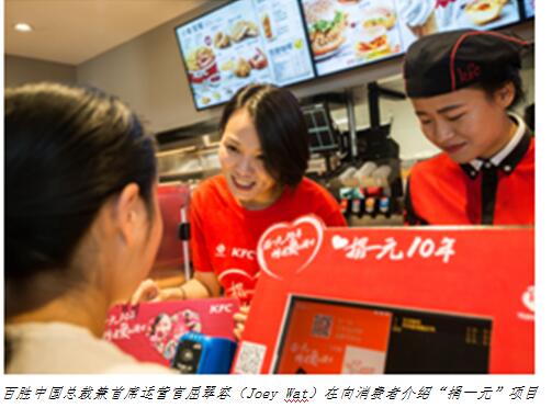 與此同時(shí),旨在為貧困地區(qū)兒童的健康成長(zhǎng)奉獻(xiàn)愛(ài)心的“捐一元”活動(dòng),已經(jīng)于7月8日至23日在百勝中國(guó)旗下遍及全國(guó)的肯德基、必勝客、塔可貝爾和東方既白餐廳展開(kāi)。