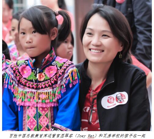 “他們都是百勝中國(guó)牽掛的孩子,這次終于見(jiàn)面了!卑賱僦袊(guó)總裁兼首席運(yùn)營(yíng)官屈翠容(Joey Wat)在公益項(xiàng)目“捐一元”成功開(kāi)展的第十個(gè)年頭,不僅在肯德基餐廳與里約奧運(yùn)會(huì)中國(guó)首金獲得者張夢(mèng)雪一同捐款、號(hào)召消費(fèi)者參與捐一元,還同她的先生和孩子共赴這場(chǎng)大山里的約定。