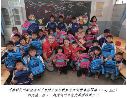 在云南尋甸縣瓦房小學(xué),屈翠容和家人一道,把嶄新的書(shū)包作為禮物,發(fā)放到該校孩子們手中。
