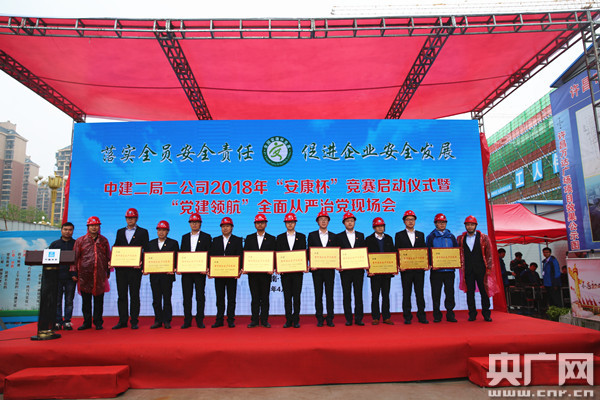 在“安康杯”競賽啟動(dòng)儀式上,公司安全總監(jiān)張國強(qiáng)首先對(duì)2017年“安康杯”競賽活動(dòng)情況和2018年工作計(jì)劃進(jìn)行了總結(jié),并指出安全是企業(yè)發(fā)展的基本保障和前提,健康是職工工作的基本需求和權(quán)益。公司正式啟動(dòng)“行為安全之星”活動(dòng)并播放了《中國建筑“行為安全之星”活動(dòng)宣傳片》及公司安康建設(shè)工作視頻;顒(dòng)還分別為河南省和局2017年度安康杯競賽先進(jìn)集體和個(gè)人、公司2017年度優(yōu)秀青年安全生產(chǎn)示范崗、2018年青年安全生產(chǎn)示范崗創(chuàng)建集體進(jìn)行了頒獎(jiǎng)和授牌。此外,西北分公司組織了安全文化建設(shè)表演,并制作播放《囑托》視頻,敲響安全警鐘,最后全體人員進(jìn)行了安全宣誓。