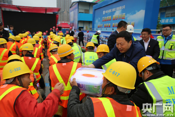 與會(huì)領(lǐng)導(dǎo)還集體為工友送去安康大禮包并對(duì)現(xiàn)場(chǎng)進(jìn)行了安全巡查。
