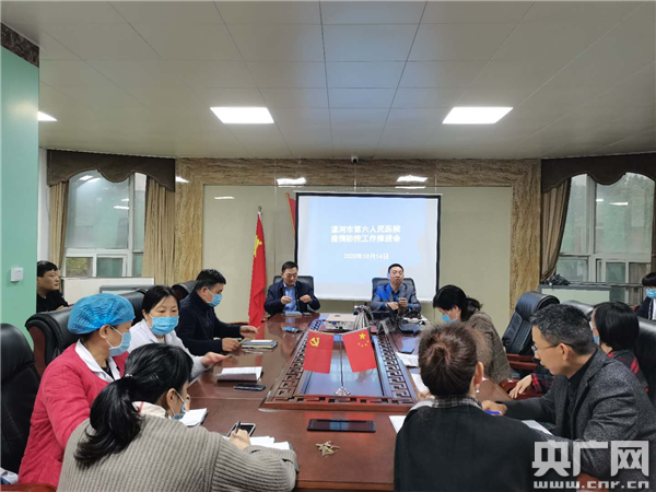 央廣網(wǎng)漯河(記者 王勇生 通訊員 張 迪)為嚴(yán)格加強(qiáng)疫情防控,確保疫情防控和醫(yī)療救治工作落實(shí)到位,10月14日下午17時(shí)左右,漯河市六院(漯河市心血管病醫(yī)院)疫情防控專題會(huì)議在門診四樓黨員活動(dòng)室召開,黨委書記李俊才、院長關(guān)新、副院長趙森及市六院疫情防控領(lǐng)導(dǎo)小組成員參加會(huì)議。