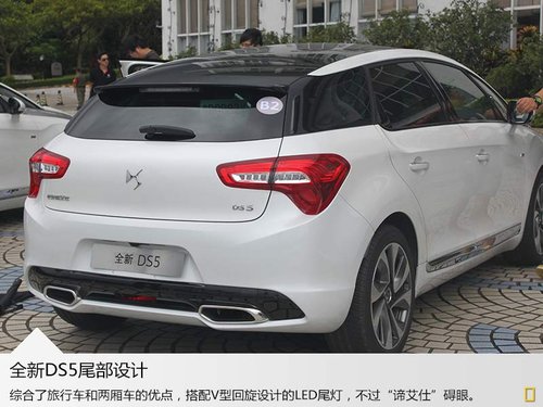 全新DS5獨(dú)特的尾廂造型綜合了旅行車和兩廂車的優(yōu)點(diǎn),搭配V型回旋設(shè)計(jì)的LED尾燈、精巧的睿黑色擾流板以及嵌入后保險(xiǎn)杠內(nèi)的賽車式扁平鍍鉻雙排氣管,視覺感受更加整體。采用鏡面鉆石切割技術(shù)的雙叉式運(yùn)動(dòng)輪轂,不僅提升了外觀的整體品質(zhì)感,也為全新DS5添加了更多Coupe跑車基因。