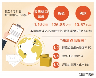 央廣網(wǎng)河南分網(wǎng)消息4月12日,記者從鄭州海關(guān)獲悉,截至4月11日,鄭州海關(guān)保稅物流中心現(xiàn)場監(jiān)管驗放跨境電子商務零售進口包裹1.16億票,貨值126.85億元,稅款10.67億元,取得單量破億、稅款破十億、貨值破百億的驕人成績。