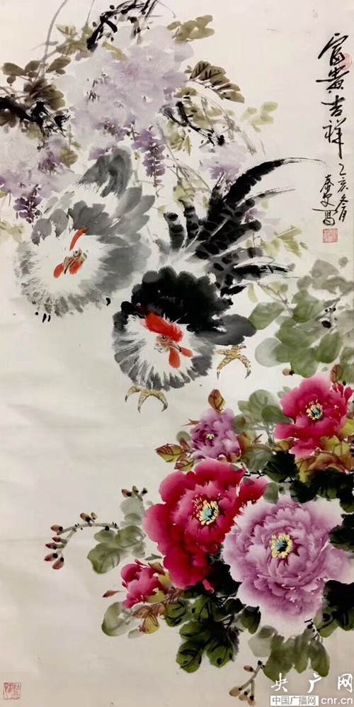平樂村村民、牡丹書畫院院長郭泰森:“洛陽市第一屆牡丹文化節(jié)時(shí),他和哥哥郭泰安到王城公園看牡丹,回來以后,郭泰安開始畫牡丹,并把牡丹畫拿出去銷售,結(jié)果還真賣出去了,當(dāng)時(shí)比較稀罕!