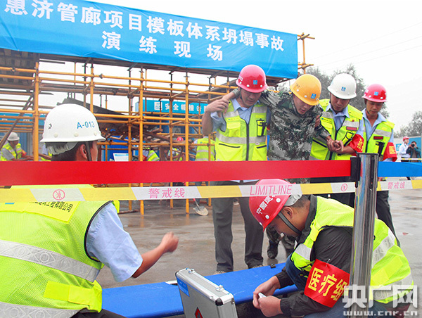 央廣網(wǎng)河南分網(wǎng)9月26日消息 “質(zhì)量是企業(yè)的生命、安全是生命的保證,中建二局以奉獻(xiàn)優(yōu)質(zhì)工程,以為業(yè)主和社會(huì)奉獻(xiàn)真誠(chéng)服務(wù)為宗旨,以為員工創(chuàng)造健康、安全的工作環(huán)境,確保公司資產(chǎn)免受損失為己任……”隨著講解人的解說(shuō),模板坍塌應(yīng)急救援演練圓滿結(jié)束。