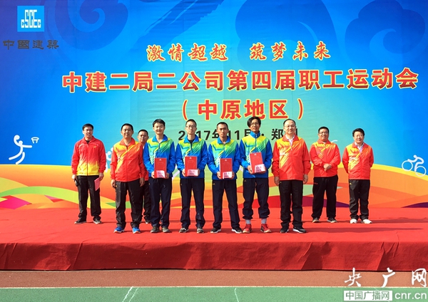 央廣網(wǎng)河南分網(wǎng)11月7日消息 11月4日早7時(shí)30分,中建二局二公司“激情超越 筑夢(mèng)未來(lái)”職工運(yùn)動(dòng)會(huì)(中原片區(qū))精彩開(kāi)幕。二公司總部、基礎(chǔ)設(shè)施管理中心、機(jī)電管理中心代表隊(duì)以及分公司總部、各在施項(xiàng)目部等400余名運(yùn)動(dòng)員齊聚鄭州輕工業(yè)學(xué)院運(yùn)動(dòng)場(chǎng)。二公司總經(jīng)理李曙東、副總經(jīng)理崔彥波、基礎(chǔ)設(shè)施管理中心經(jīng)理麻世剛、中原分公司黨委書(shū)記朱正遠(yuǎn)等出席并參加運(yùn)動(dòng)項(xiàng)目。