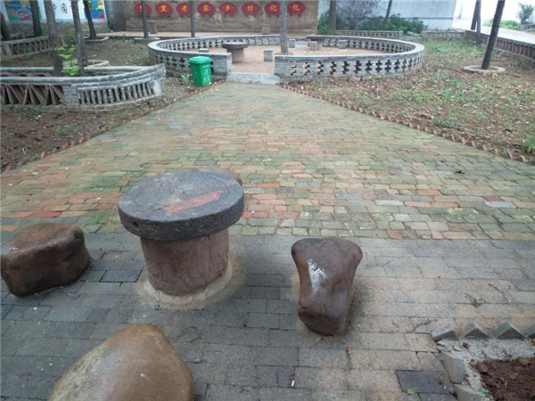 用廢舊磚瓦鋪設(shè)的鄉(xiāng)村記憶文化廣場(chǎng)