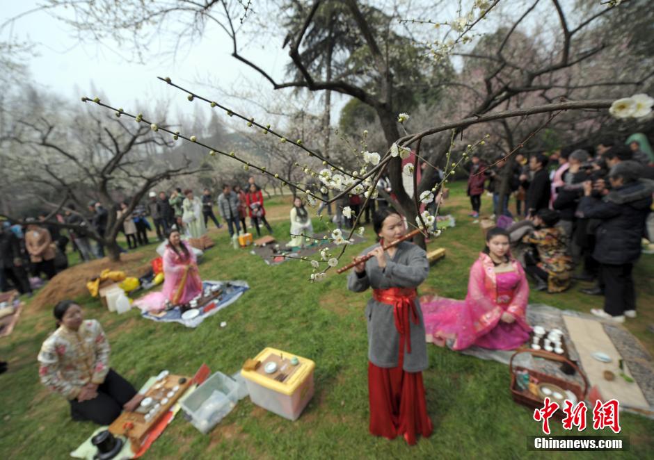 央廣網河南分網消息 據中新網報道:2月23日,湖北武漢東湖梅園內,身著古裝的美女茶藝師展示茶道藝術,花、香、茶、書、樂的“五雅之境”,吸引了眾多市民游客圍觀。(中新社發(fā) 張暢 攝)