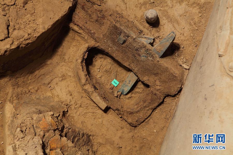 央廣網(wǎng)河南分網(wǎng)消息 據(jù)新華網(wǎng)報(bào)道:2月26日,記者從秦始皇帝陵博物院獲悉,考古專(zhuān)家在對(duì)秦兵馬俑一號(hào)坑進(jìn)行第三次考古發(fā)掘過(guò)程中,在靠近坑壁北沿的過(guò)洞中清理發(fā)現(xiàn)了一件弓弩,其最易損毀的弓弦清晰可見(jiàn),整體保存較完整,這在秦兵馬俑考古史上尚屬首次。(新華社發(fā))