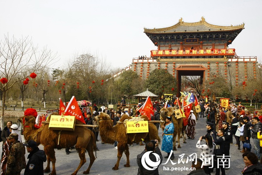 央廣網(wǎng)河南分網(wǎng)消息 據(jù)人民網(wǎng)報(bào)道:3月8日,百峰駱駝走進(jìn)國(guó)家5A級(jí)景區(qū)——開封清明上河園,通過此次活動(dòng),清明上河園景區(qū)向人們展示了“八朝古都”開封悠久歷史文化和北宋時(shí)期輝煌的茶路文化,讓游客真切感受“一朝步入畫卷、一日夢(mèng)回千年”的時(shí)光倒流之感。