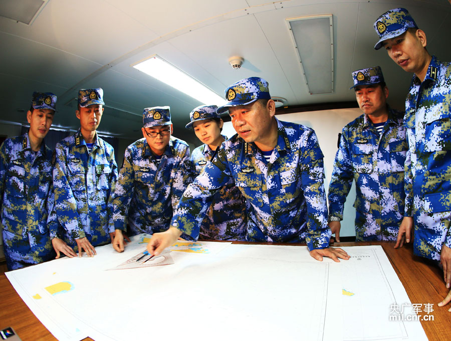 根據(jù)統(tǒng)一安排,中國(guó)海軍艦艇編隊(duì)計(jì)劃搜索海區(qū)位于南緯44度、東經(jīng)91度附近,被稱為咆哮的西風(fēng)帶,一年四季海況都比較差,特別是受涌浪影響,平均浪高在3米以上,最高可達(dá)6至8米。針對(duì)搜尋海區(qū)的特點(diǎn),航渡過程中,編隊(duì)海上任務(wù)指揮所按照上級(jí)通報(bào)的搜索區(qū)域,精心研究海區(qū)的水文氣象,特別是洋流和西風(fēng)帶的數(shù)據(jù)信息,調(diào)整完善搜救方案預(yù)案。與此同時(shí),潛水分隊(duì)、掃測(cè)分隊(duì)、醫(yī)療分隊(duì)和艦載直升機(jī)組也都進(jìn)行了充分的準(zhǔn)備,并多次開展針對(duì)性訓(xùn)練。