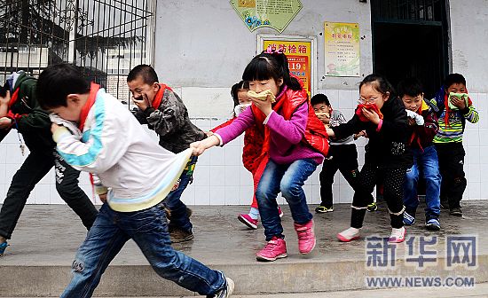 3月25日,鄭州市二七區(qū)銘功路小學(xué)的學(xué)生們?cè)谶M(jìn)行緊急疏散演練。