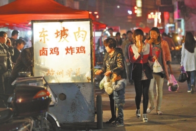除了真真切切地滿足味蕾,城中村的小吃亦是極大的視覺享受。特別是在夏天晚上,長長的街道兩側盡是露天擺放的各色小吃,遠遠望去頗為壯觀,什么開封的雞血湯,豫東的吊爐燒餅,色澤鮮亮的道口燒雞……各色美食在燈光下散發(fā)出誘人的味道。置身其間,目光所至,盡是人間草根美食,常有目不暇接之感,仿佛顧盼之間,就已感受了這些美味。