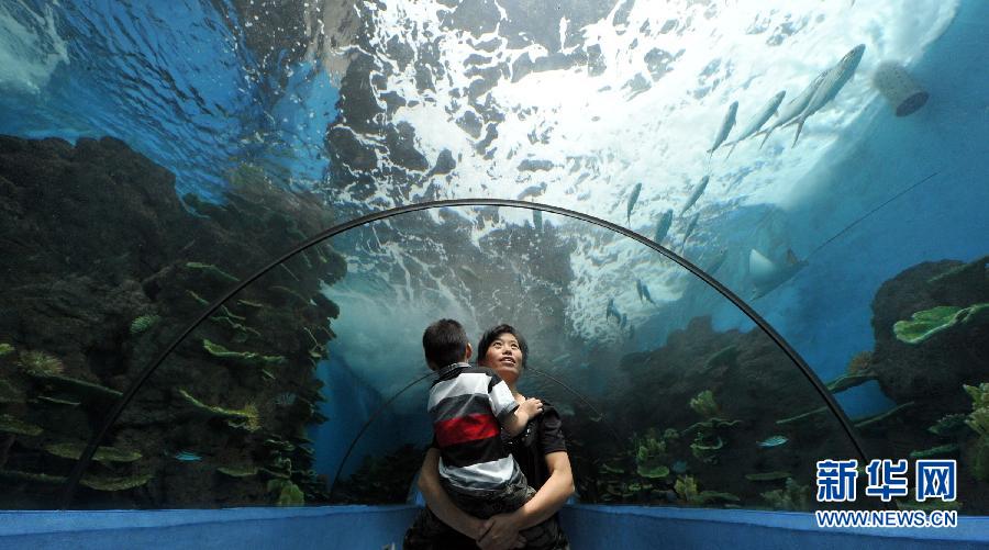 2011年7月15日,小輝媽媽帶著小輝來(lái)到合肥海洋世界看海洋動(dòng)物。顧小輝是合肥一所孤獨(dú)癥兒童康復(fù)訓(xùn)練學(xué)校的學(xué)生。為了給患孤獨(dú)癥的小輝看病,小輝的媽媽帶著他從金寨縣的農(nóng)村來(lái)到合肥,踏上漫長(zhǎng)而艱辛的康復(fù)訓(xùn)練之路。(記者 劉軍喜攝)
