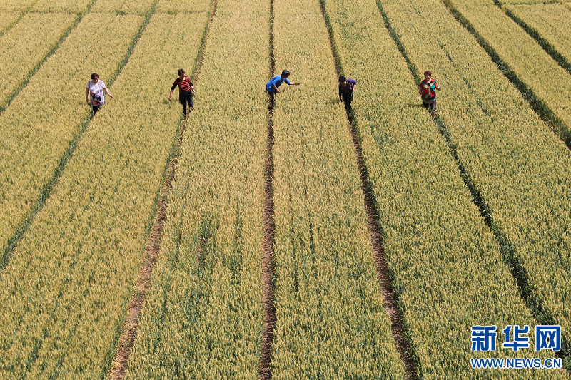 5月20日,河南省安陽市內(nèi)黃縣城關(guān)鎮(zhèn)農(nóng)民在麥田里勞作。
