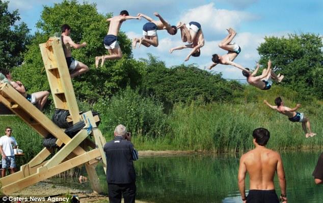 據(jù)英國(guó)《每日郵報(bào)》當(dāng)?shù)貢r(shí)間2014年8月30日?qǐng)?bào)道,一對(duì)兄弟,26歲的Johannes Schrieber與他的哥哥28歲的Daniel,建造了一個(gè)木制機(jī)械,可以將人彈射出去12米,高度可以達(dá)到5米。兩兄弟用這“人體彈弓”將自己射進(jìn)湖水中,而他們發(fā)明的初衷竟然是認(rèn)為這比乘飛機(jī)要便宜。他們共募集到700英鎊的捐款,每一分錢(qián)都用在了刀口上,至今還沒(méi)有人死亡。 (網(wǎng)頁(yè)截圖)