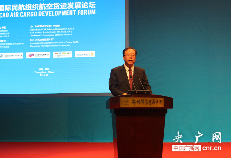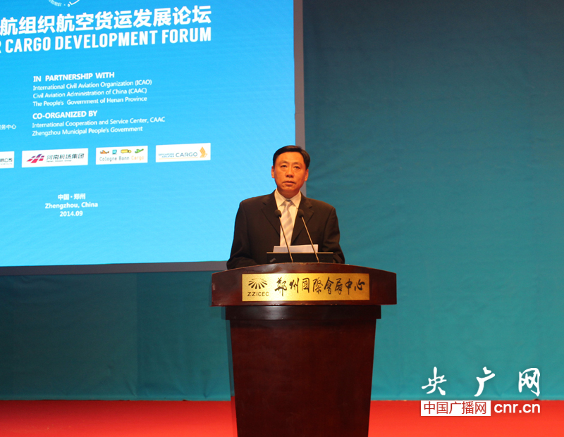河南省副省長張維寧致歡迎詞。他說,2013年3月7日,國務院正式批復了《鄭州航空港經濟綜合實驗區(qū)發(fā)展規(guī)劃(2013~2025年)》,這是全國首個上升為國家戰(zhàn)略的航空港經濟發(fā)展先行區(qū)。河南省將以鄭州機場為核心打造“鄭州航空港經濟綜合實驗區(qū)”,并將這個“綜合實驗區(qū)”打造成為中原經濟區(qū)發(fā)展的引擎和國家內陸開放高地。與國際民航組織合作舉辦此次論壇,旨在搭建了一個與世界交流合作的平臺。