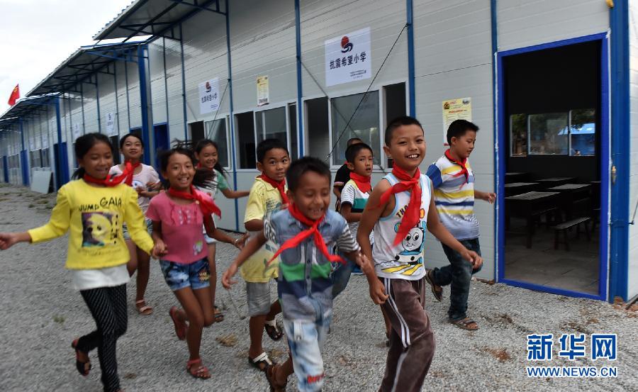 央廣網河南分網消息 據新華網報道:10月12日,永平鎮(zhèn)第一中心小學的學生在參觀新建的板房學校。當日,由中國青少年發(fā)展基金會募集72萬元為云南景谷地震災區(qū)搭建的首所板房抗震希望小學在云南景谷縣永平鎮(zhèn)落成。該學校建成的首批24間板房教室,能滿足永平鎮(zhèn)第一中心小學一至四年級24個教學班1457名學生復課。新華社記者 陳海寧 攝