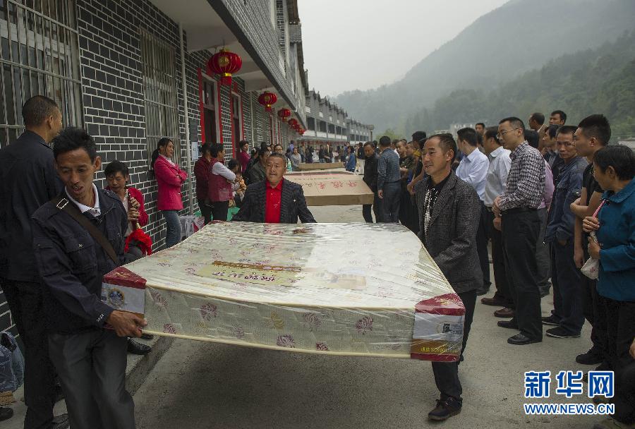 央廣網(wǎng)河南分網(wǎng)消息 據(jù)新華網(wǎng)報(bào)道:10月13日,村干部和村民在幫助一戶貧困家庭搬家。當(dāng)日,重慶市黔江區(qū)望嶺村桂花園安置點(diǎn)迎來47戶高山生態(tài)扶貧戶,區(qū)扶貧辦還為其中12戶深度貧困家庭配套了生活必備設(shè)施,拎包即可入住。此外,望嶺村還引入高山生態(tài)效益農(nóng)業(yè)示范基地,促進(jìn)貧困家庭人員就地就業(yè)。新華社記者 陳誠 攝