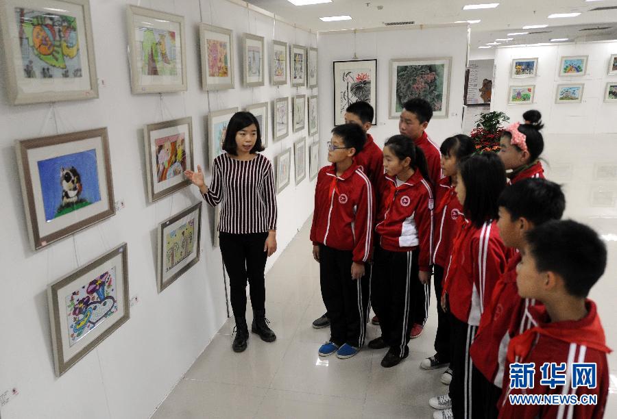 央廣網(wǎng)河南分網(wǎng)消息 據(jù)新華網(wǎng)報(bào)道:10月28日,學(xué)生們?cè)趨⒂^中國(guó)夢(mèng)美術(shù)作品展。近日,河北省霸州市舉辦了以“中國(guó)夢(mèng)”為主題的少兒美術(shù)作品展,共展出了從該市10余所幼兒園、20家畫(huà)室的近2000幅作品中篩選出來(lái)的408幅作品。該美術(shù)作品展涵蓋書(shū)法、國(guó)畫(huà)、水粉畫(huà)、油畫(huà)、丙烯畫(huà)、特殊材料繪畫(huà)及手工等七大類作品,充分展示了少兒豐富多彩的精神文化生活和積極向上的文化風(fēng)貌,為少年兒童搭建了展示才藝、展示夢(mèng)想的舞臺(tái)。新華社記者 李曉果 攝