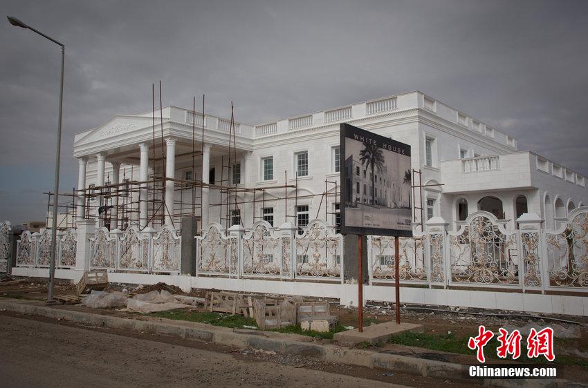 當(dāng)?shù)貢r間2014年12月15日,伊拉克埃爾比勒,在一個名為“夢幻之城”的住宅區(qū)里,一座價值2000萬美元的“山寨版白宮”拔地而起。而距該住宅區(qū)不到48公里的地方,庫爾德武裝正與IS極端組織進(jìn)行作戰(zhàn)。這個名叫“夢幻之城”的住宅區(qū)自2003年開始建設(shè),內(nèi)部有獨(dú)立的清真寺、購物區(qū)以及學(xué)校。盡管伊拉克存在安全隱患,但是半自治的庫爾德地區(qū)依然被一些投資者看做“新迪拜”,盡管“伊斯蘭國”武裝挺進(jìn),以及巴格達(dá)的預(yù)算控制,遏制了一些投資熱情,但是當(dāng)?shù)匾廊灰燥w快的速度發(fā)展著。圖片來源:CFP視覺中國