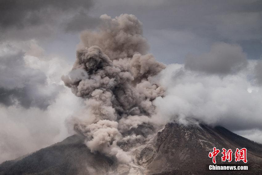 印尼錫納朋火山噴發(fā) 火山灰沖天如蘑菇云