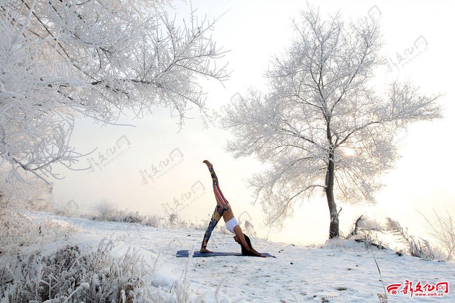 天與水,霧與淞,力與美......此時(shí)的北國江城吉林市已是霜花綴滿枝頭,12月17日將近零下30度的氣溫,一棵精美絕倫的霧凇樹下,一位身材姣好的女子舞動(dòng)著身姿練起瑜伽,與江邊的霧凇美景渾然一體。