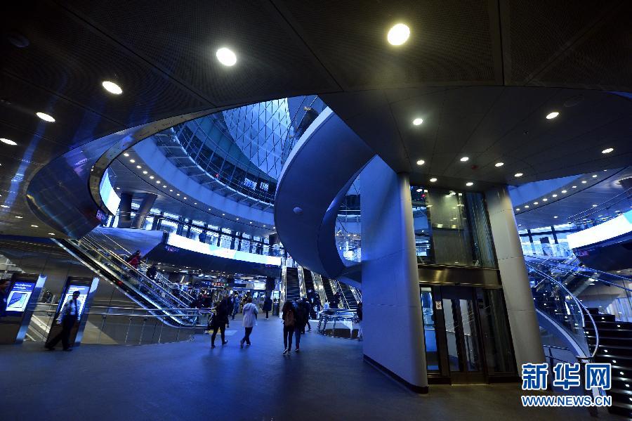 央廣網(wǎng)河南分網(wǎng)消息 據(jù)新華網(wǎng)報道:日前新建成投入使用的紐約地鐵富爾頓換乘中心是紐約市新建最大的地鐵換乘樞紐,擁有27個入口,6.6萬平方英尺的零售和商業(yè)辦公空間,九條地鐵線路交匯,每天換乘人數(shù)達(dá)30萬人次,堪稱紐約地鐵的“中央車站”。該地鐵換乘樞紐建設(shè)歷時10年,耗資14億美元。地鐵站的設(shè)計充滿現(xiàn)代感,尤其是頂部的穹頂天幕設(shè)計,利用自然光和材料反光效果,使車站大廳顯得富麗堂皇。新華社記者王雷攝